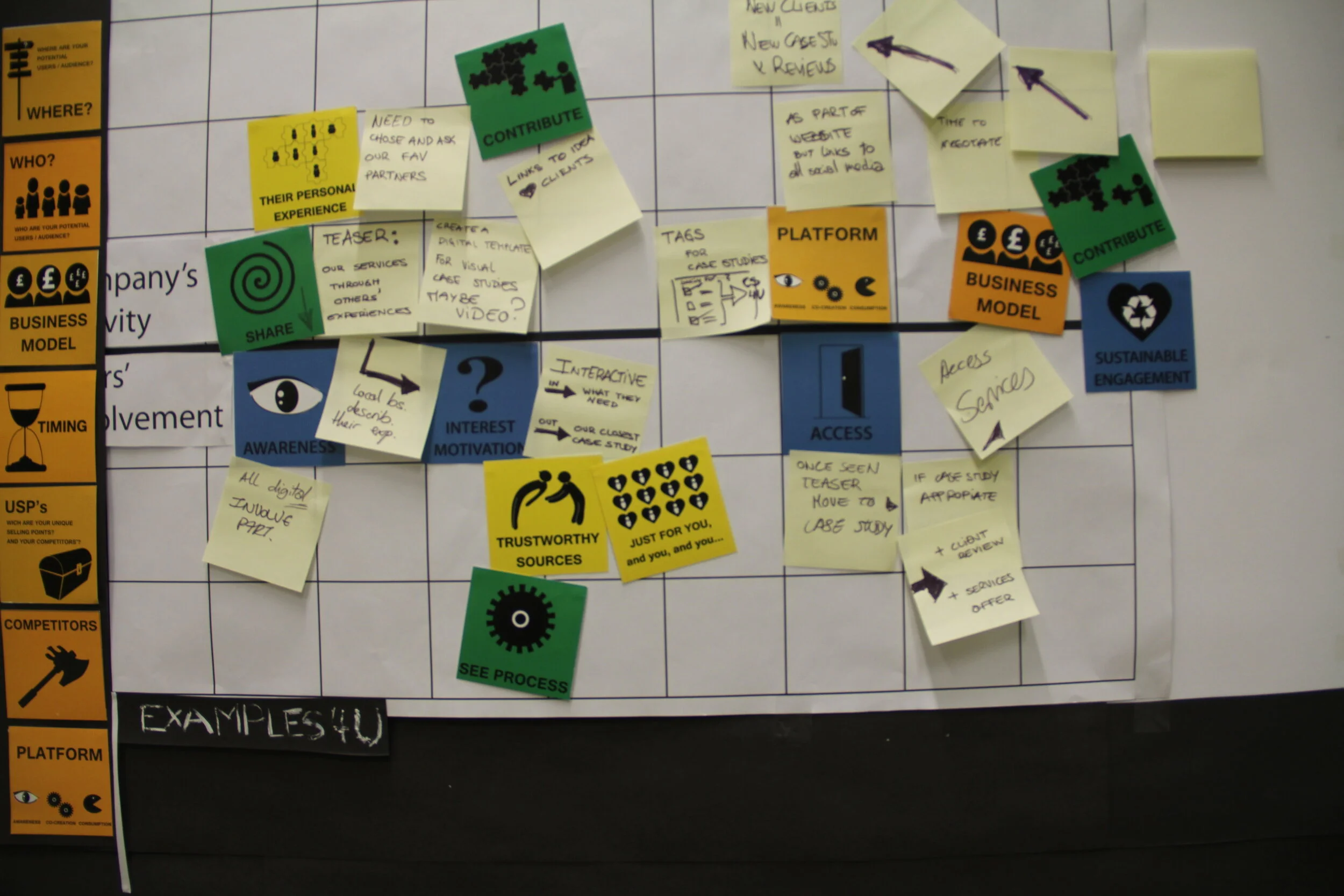 They all had advantages and disadvantages. We eventually opted for the latter because companies working in more rural areas of Scotland often were not co-located. Having the tool as a web-based service would allow these teams to work from different locations. However, this compromised the value gained by having a cross-functional team gathered around a table thinking together. Regarding monetisation, we chose to make it freely available online.